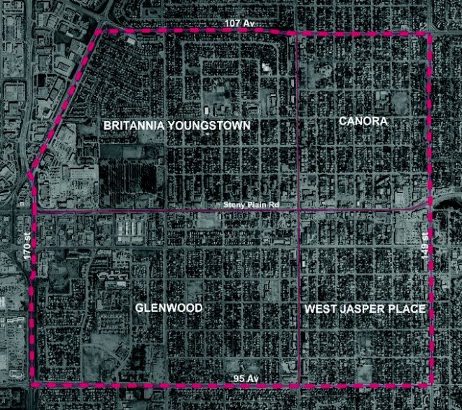 The City of Edmonton is embarking on an Area Redevelopment Plan process for the four Jasper Place neighbourhoods of Britannia-Youngstown, Canora, Glenwood and West Jasper Place, as well as a portion of the Stony Plain Road commercial corridor. The Jasper Place Area Redevelopment Plan (ARP) is an important planning document that will guide future land use and zoning decisions in your neighbourhood.