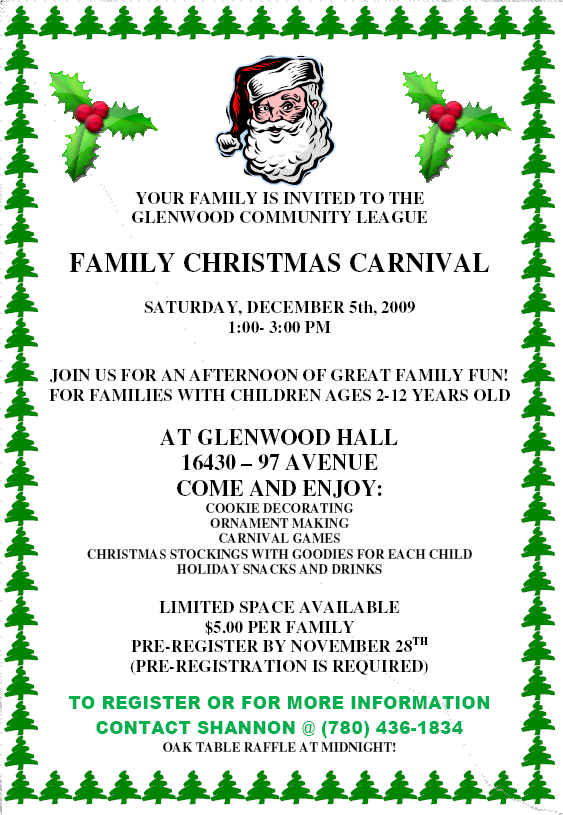 The Glenwood Community League – Christmas Party, Family Christmas Carnival